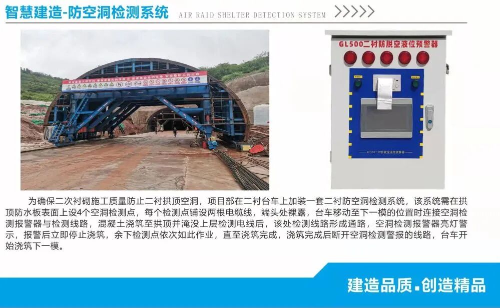 采用二衬防空洞检测系统,实现了混凝土浇筑的实时监测,有效防止拱顶空洞的产生,有效解决了混凝土的结构安全及耐久性问题。